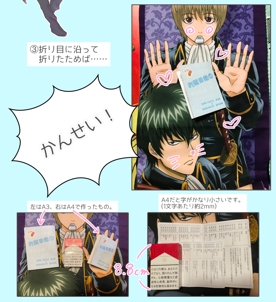 A4でも読めますが、字がかなり小さくなるのでA3でプリントすることをオススメします。